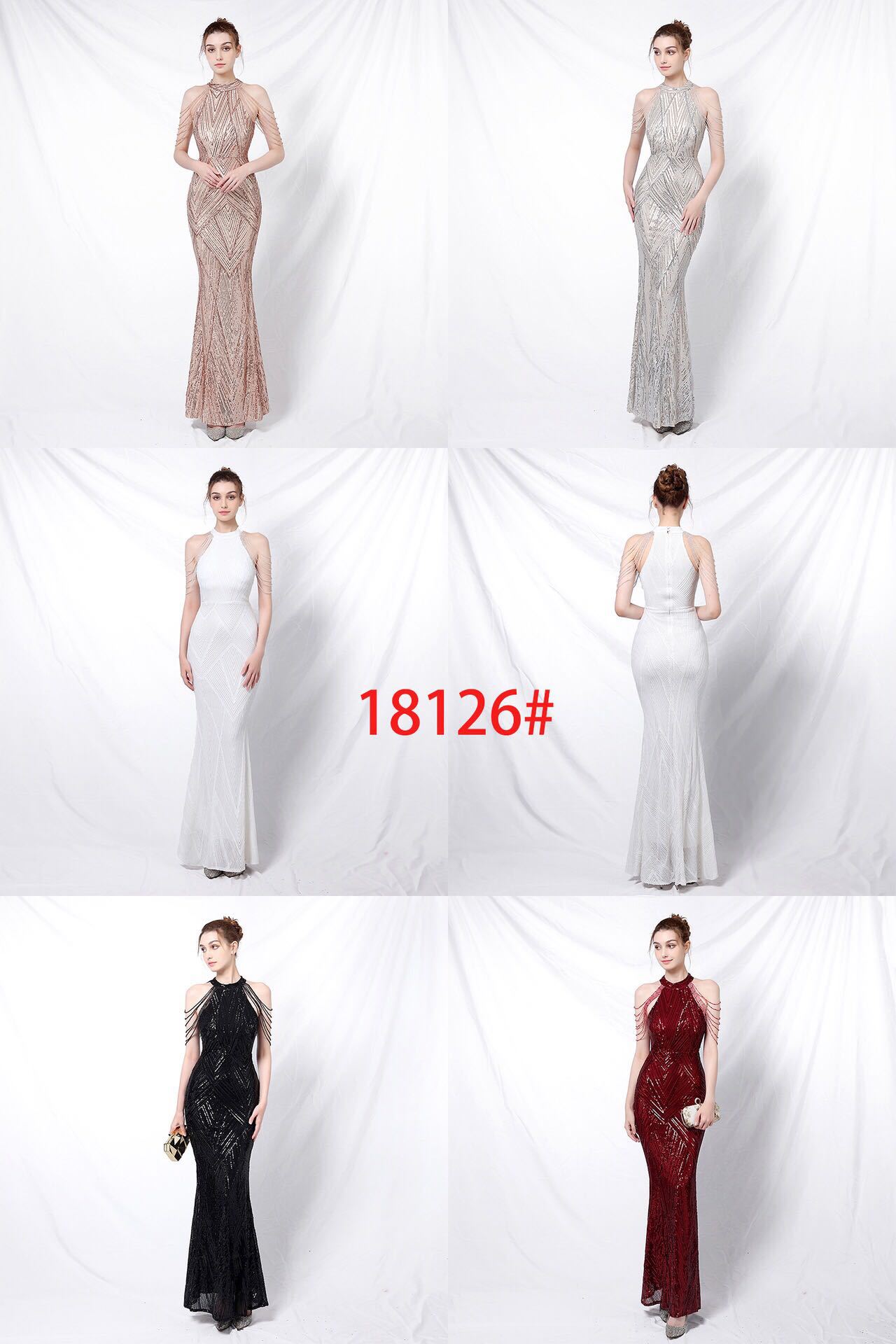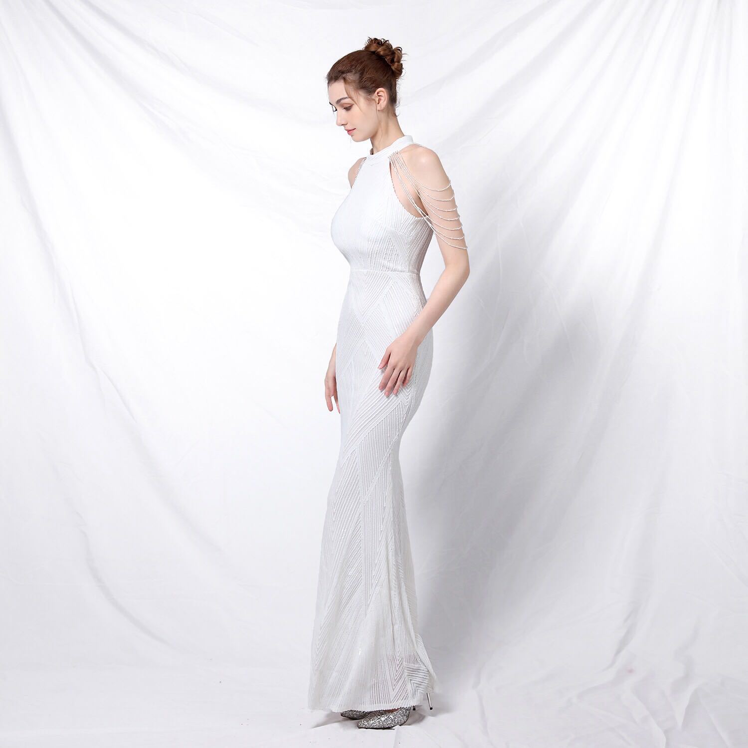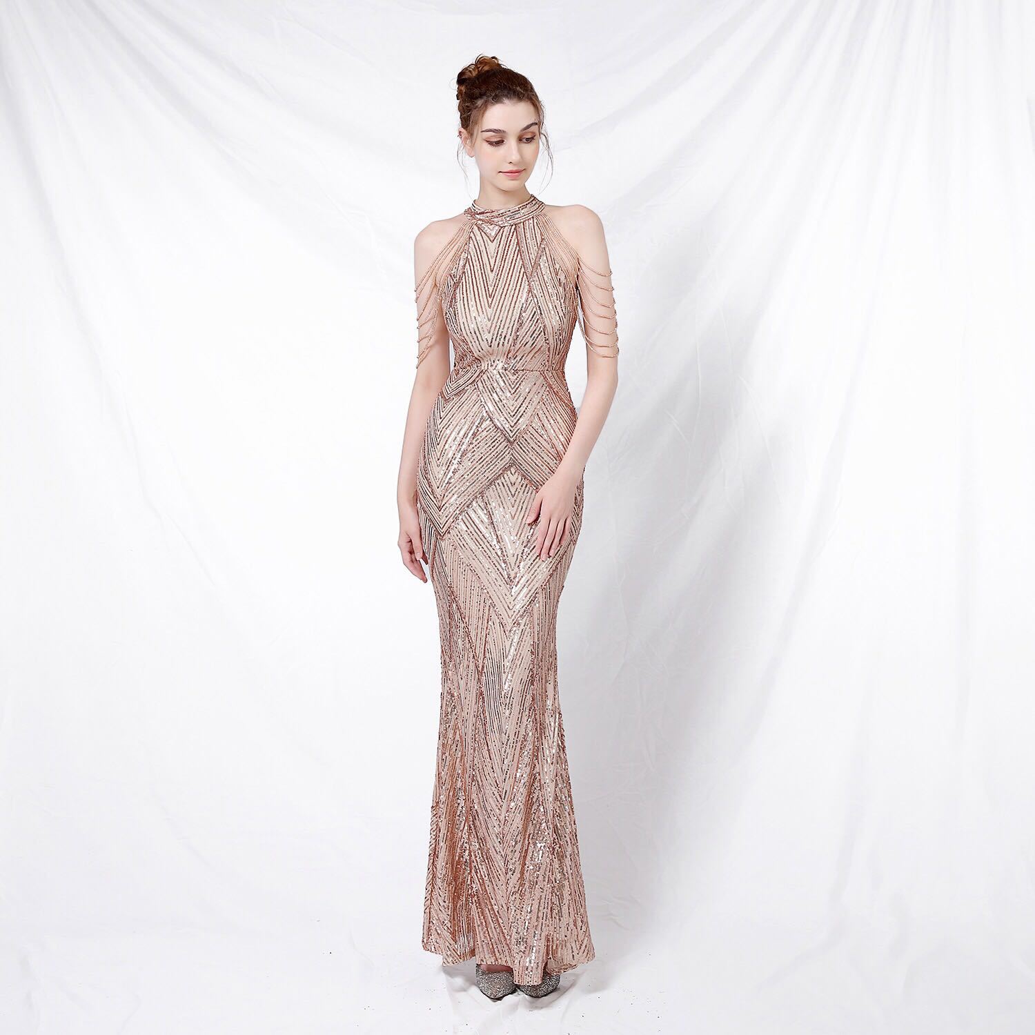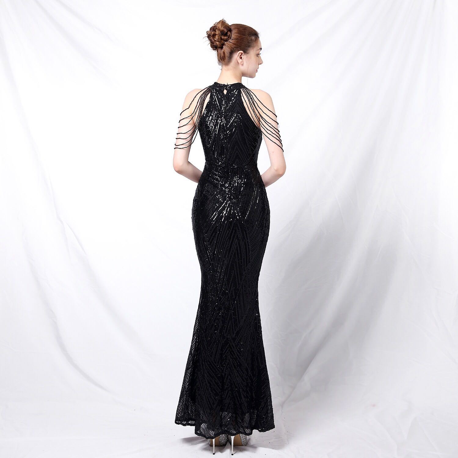 New Evening , Bead Sequins Banquet , Long Halter Neck Drilled Fishtail Evening Dress