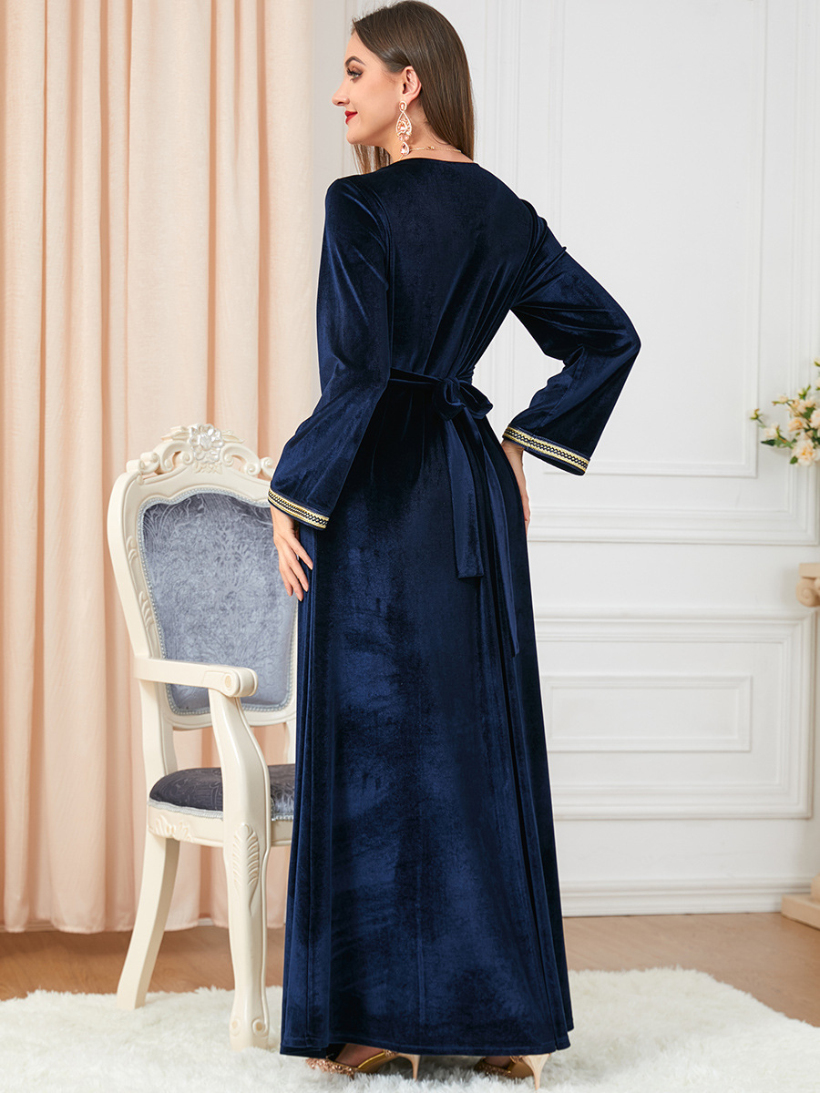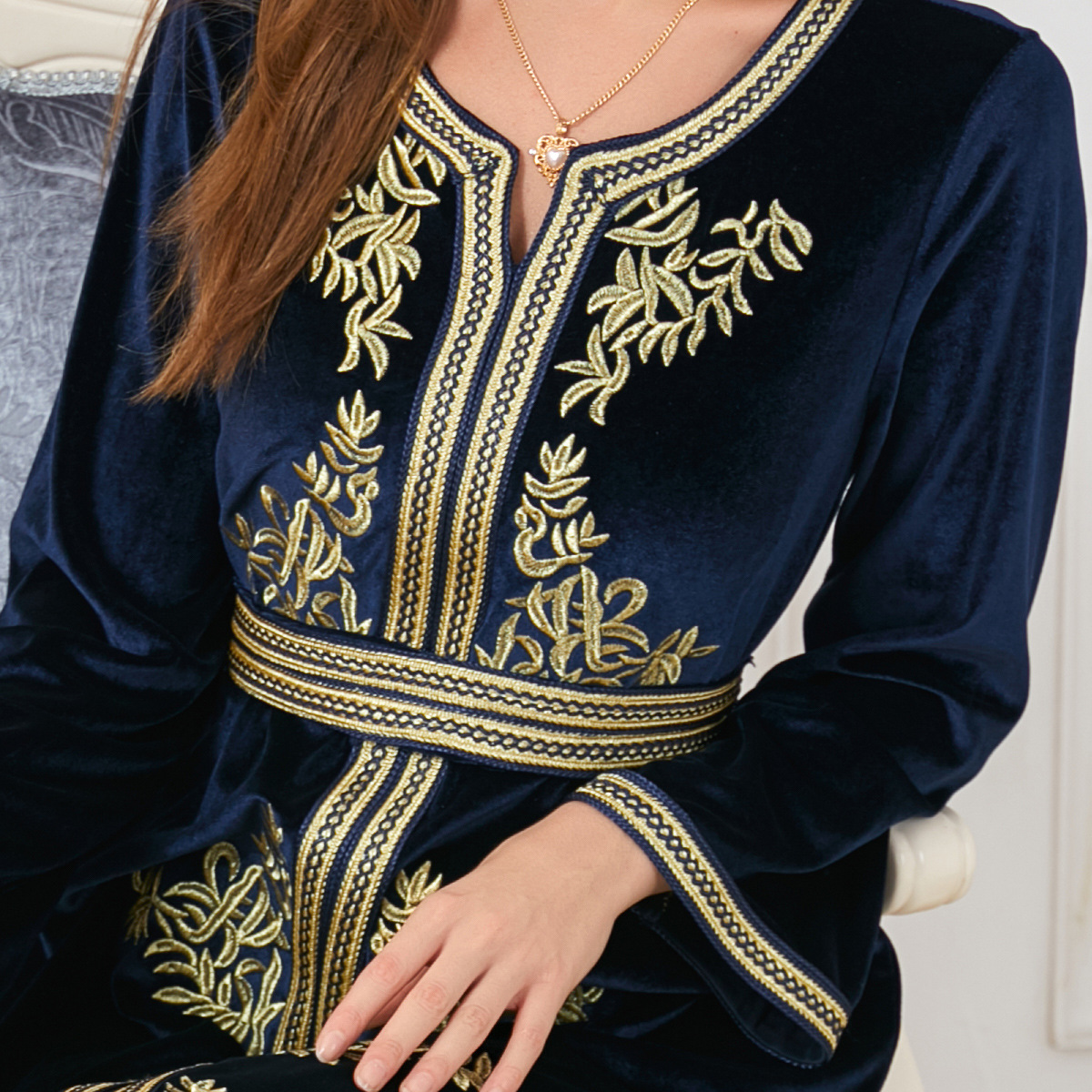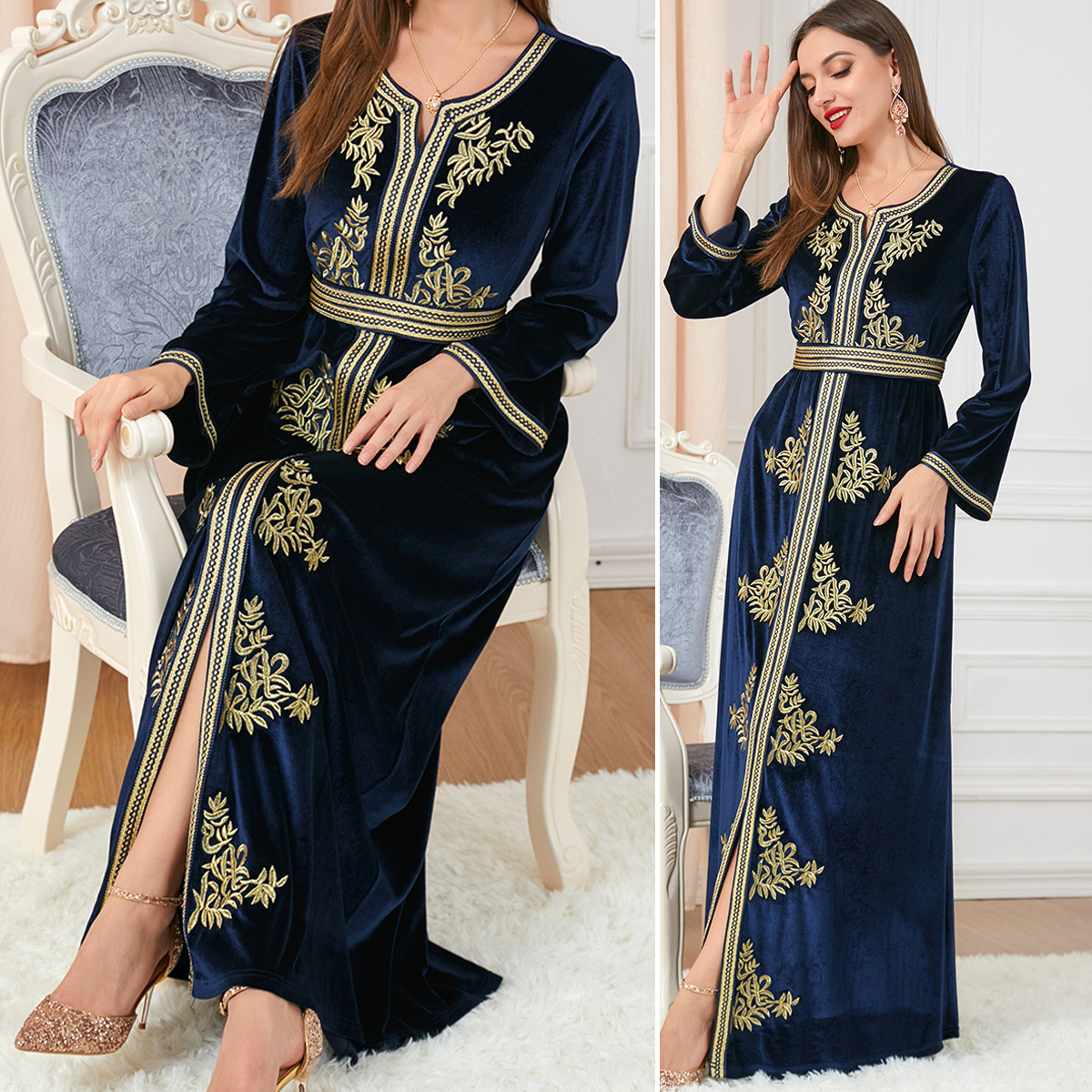 New Arrival Long-sleeved Slit Autumn And Winter Women's Wear Embroidered Clothes Velvet Dress
